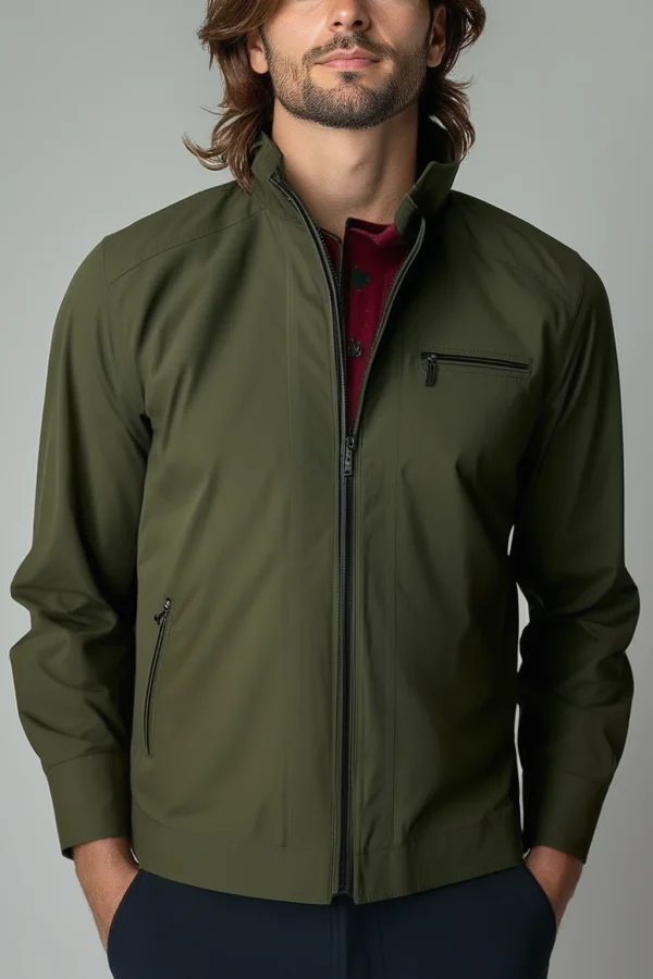 بامبر جکت را میتوانید با تیشرت یا بافت یقهگرد، همراه با شلوار جین یا کتان و کتونی اسپرت ست کنید تا استایلی روزمره، راحت و جذاب داشته باشید.