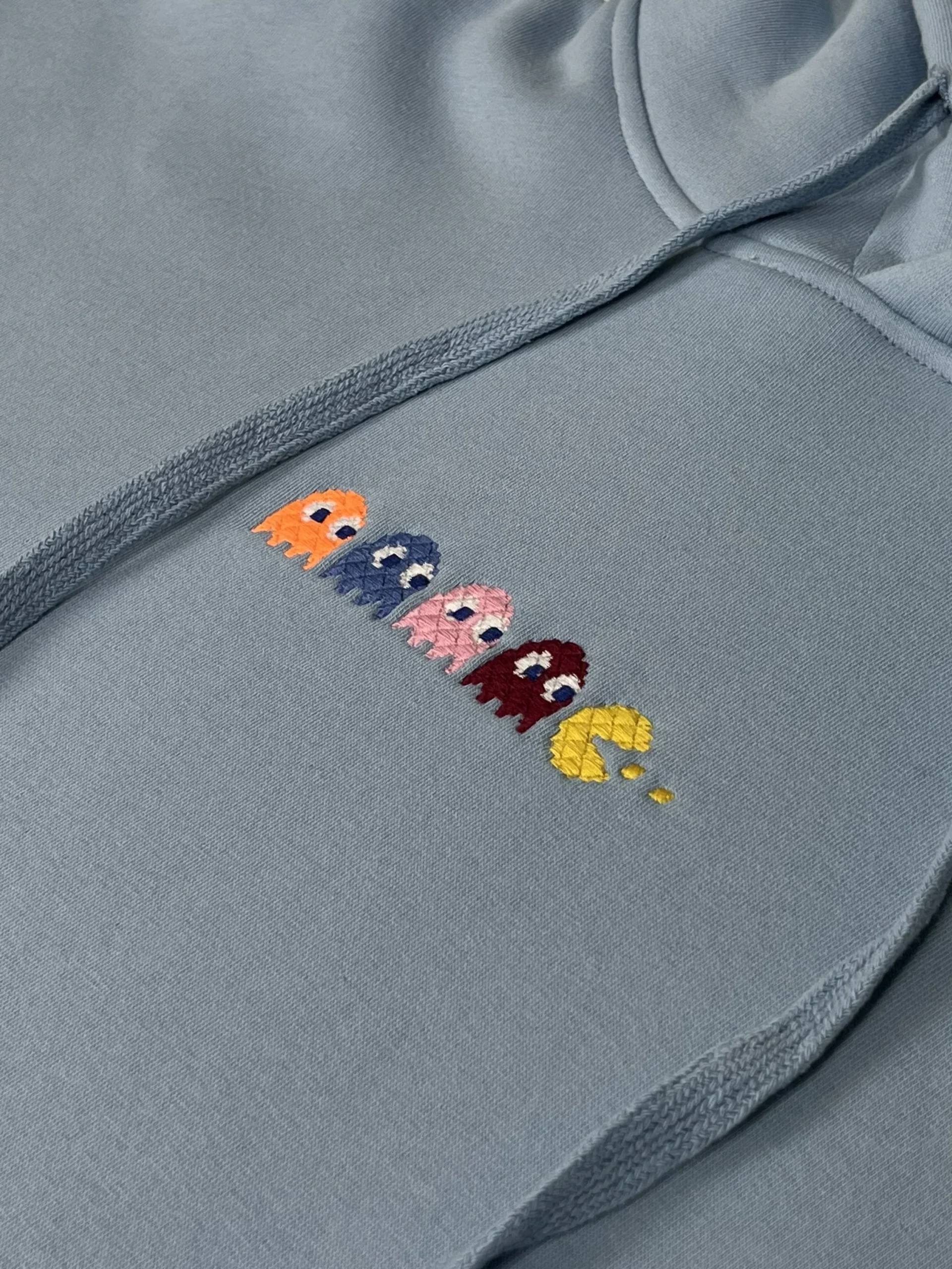 هودی پکمن را میتوانید با شلوار جین تیره یا اسلش ساده و کتونی اسپرت سفید یا رنگی ست کنید. برای استایل خیابانی جذابتر، میتوانید آن را زیر کت جین یا پافر بپوشید.