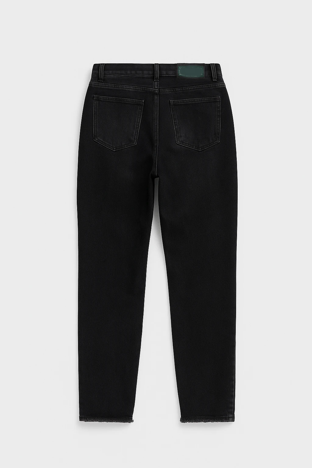 شلوار جین مام استایل ذغالی: فیت آزاد و خوشفرم، رنگی جذاب و قابلست با هر آیتمی.